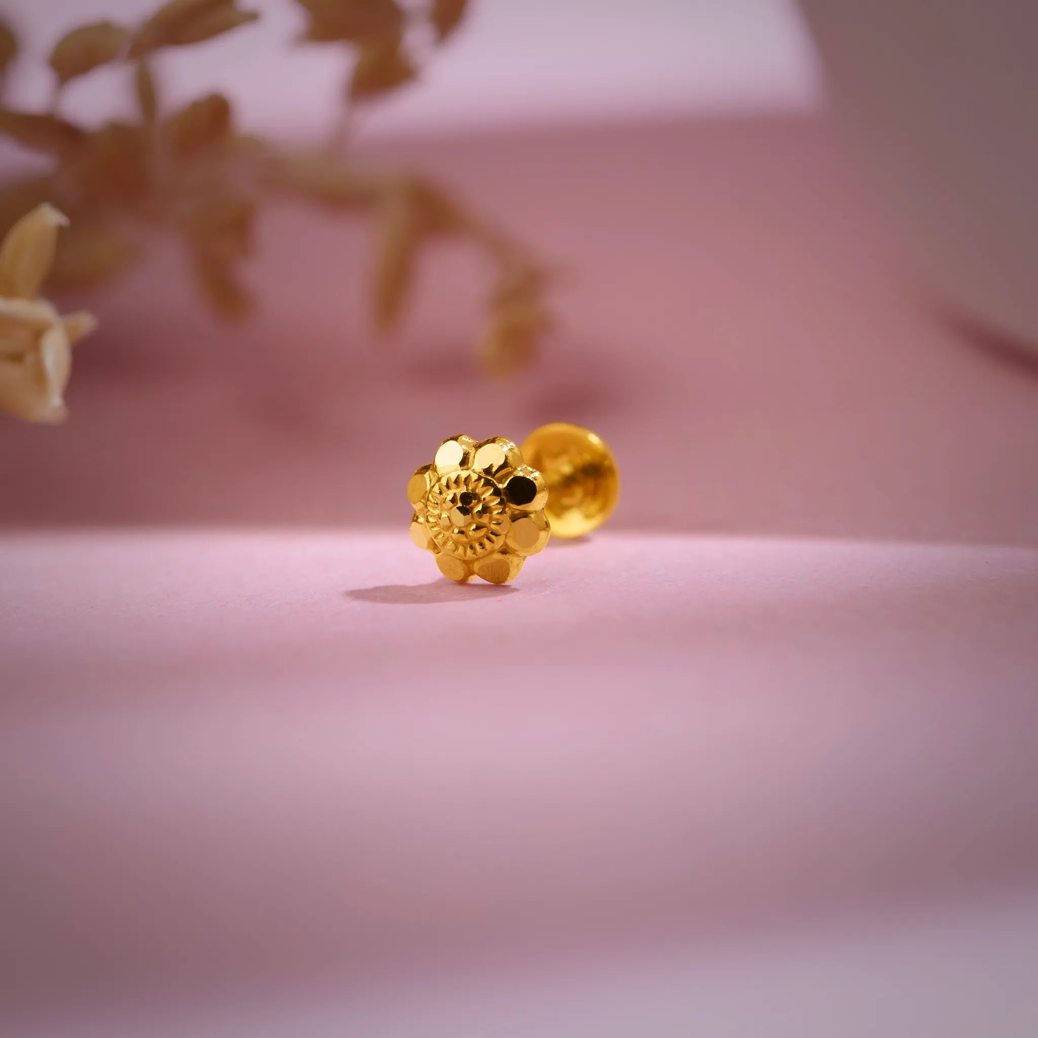 Broader forehead and a pointed chin? Go for round, delicate nose pins or petite floral diamonds. These designs draw gentle focus to the center of your face, balancing its natural charm.