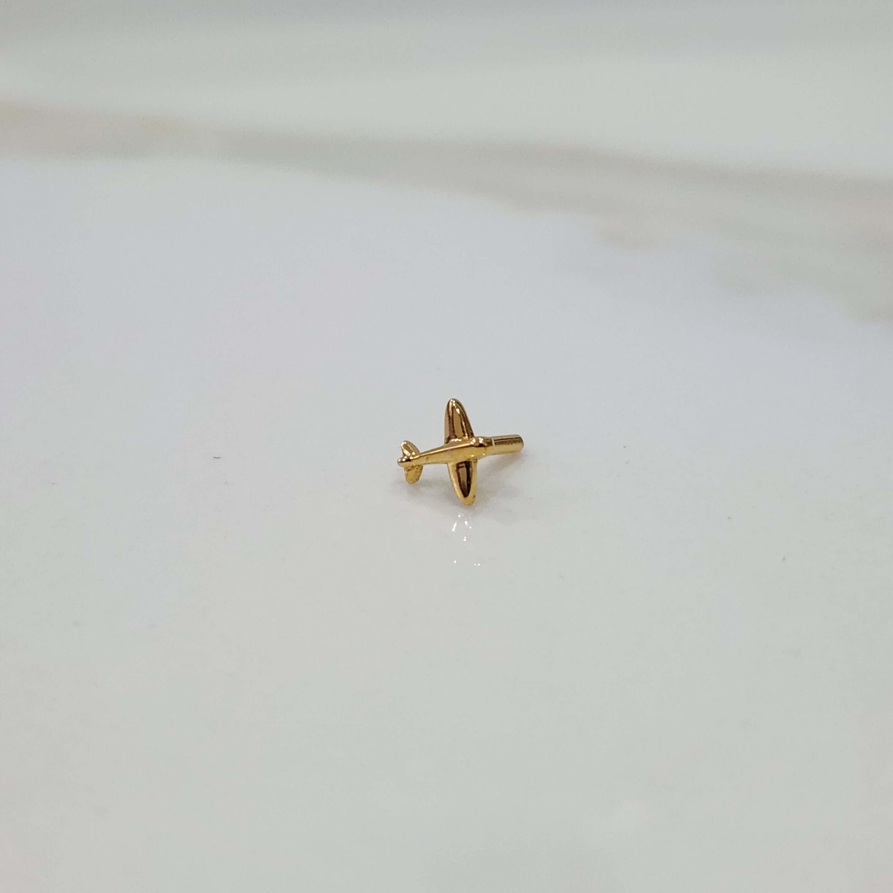 This gold nose pin is quite simple in design with a streamlined airplane shape with smooth, sleek wings and a tapered body that suggests speed and style. You can check out this gold nose pin with price at Yuvora's website.