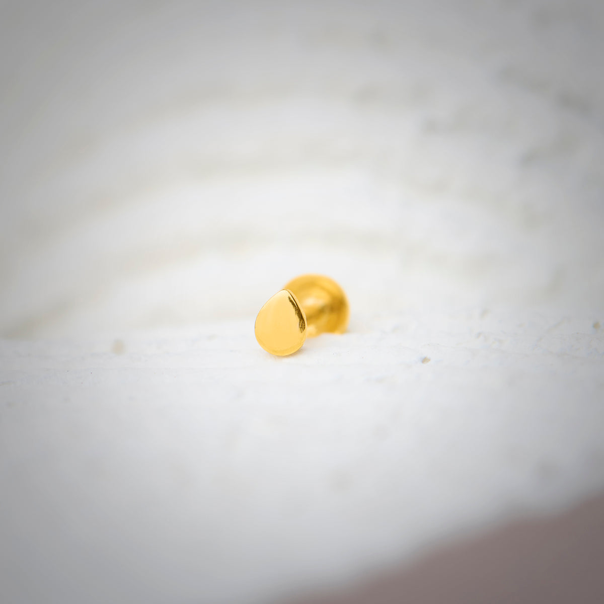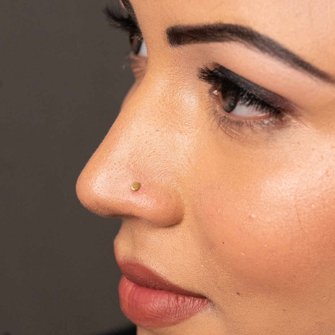 The nose pin has a smooth teardrop shaped gold end that is polished and has a graceful and subtle beauty that is perfect to wear daily.