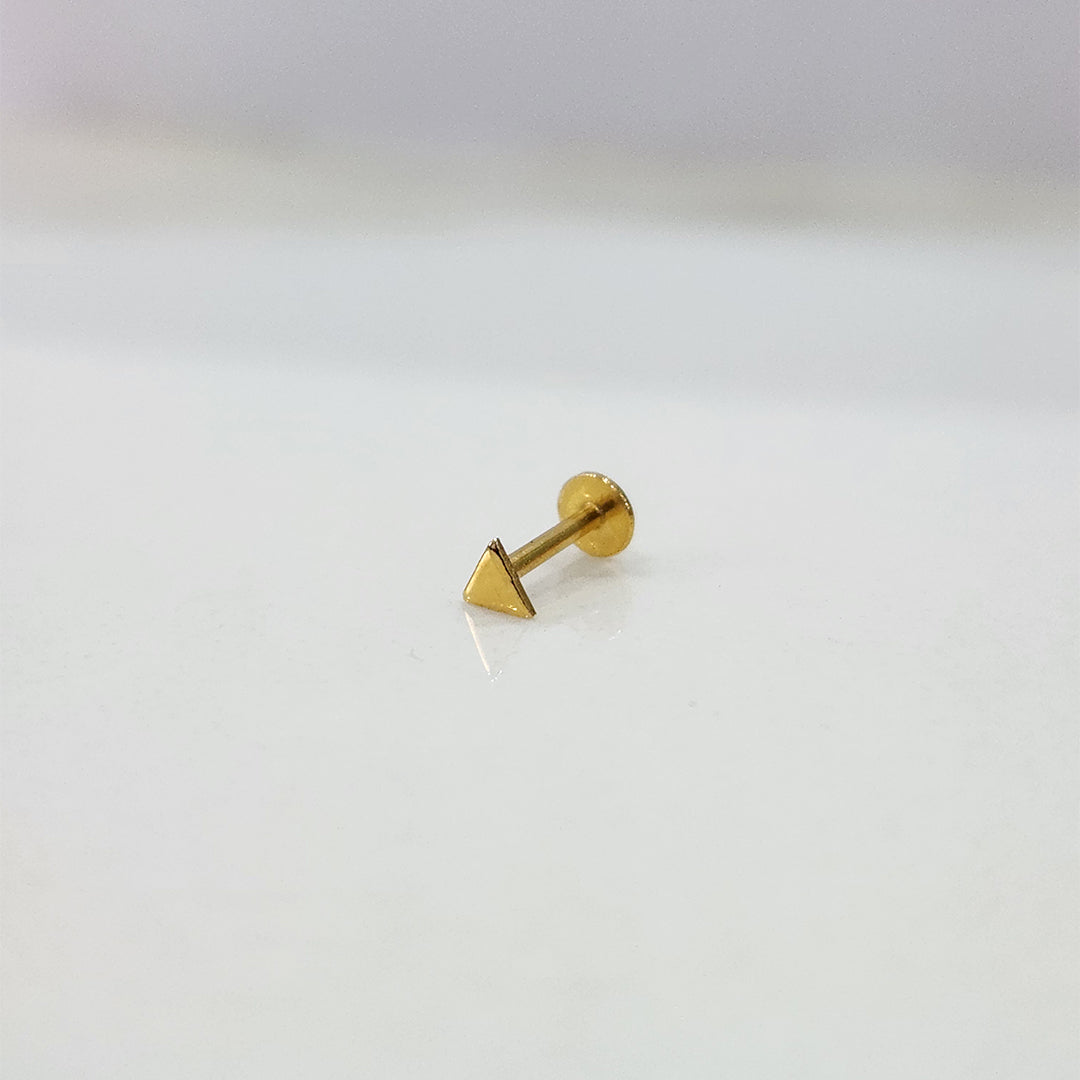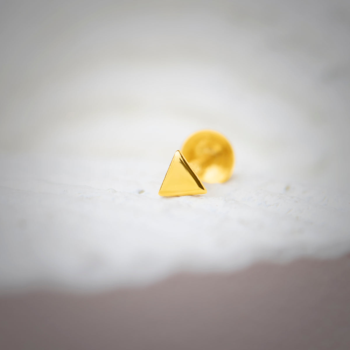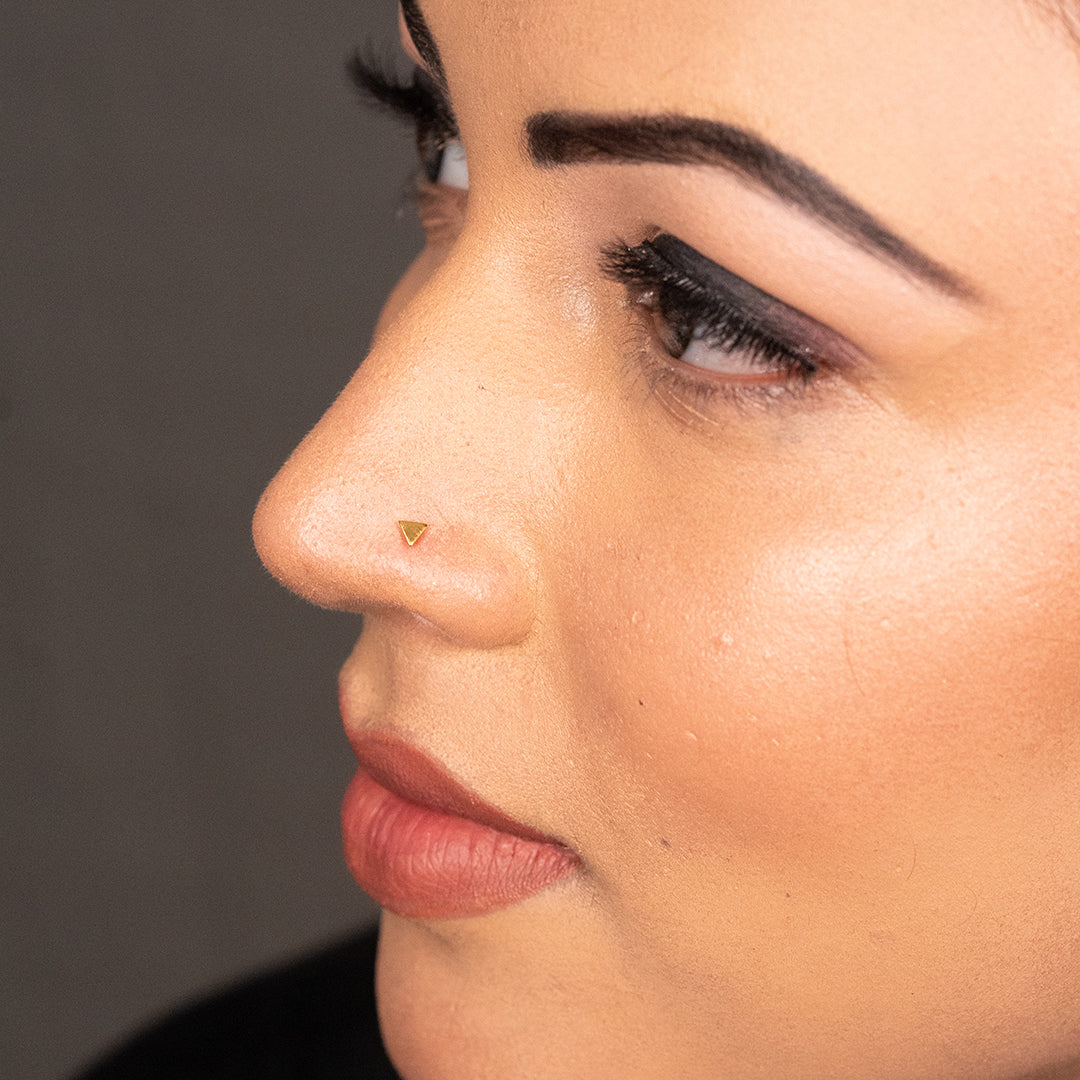 The nose pin is a clean polished triangular shape with clean lines, making a bold but sophisticated statement with minimalist design.