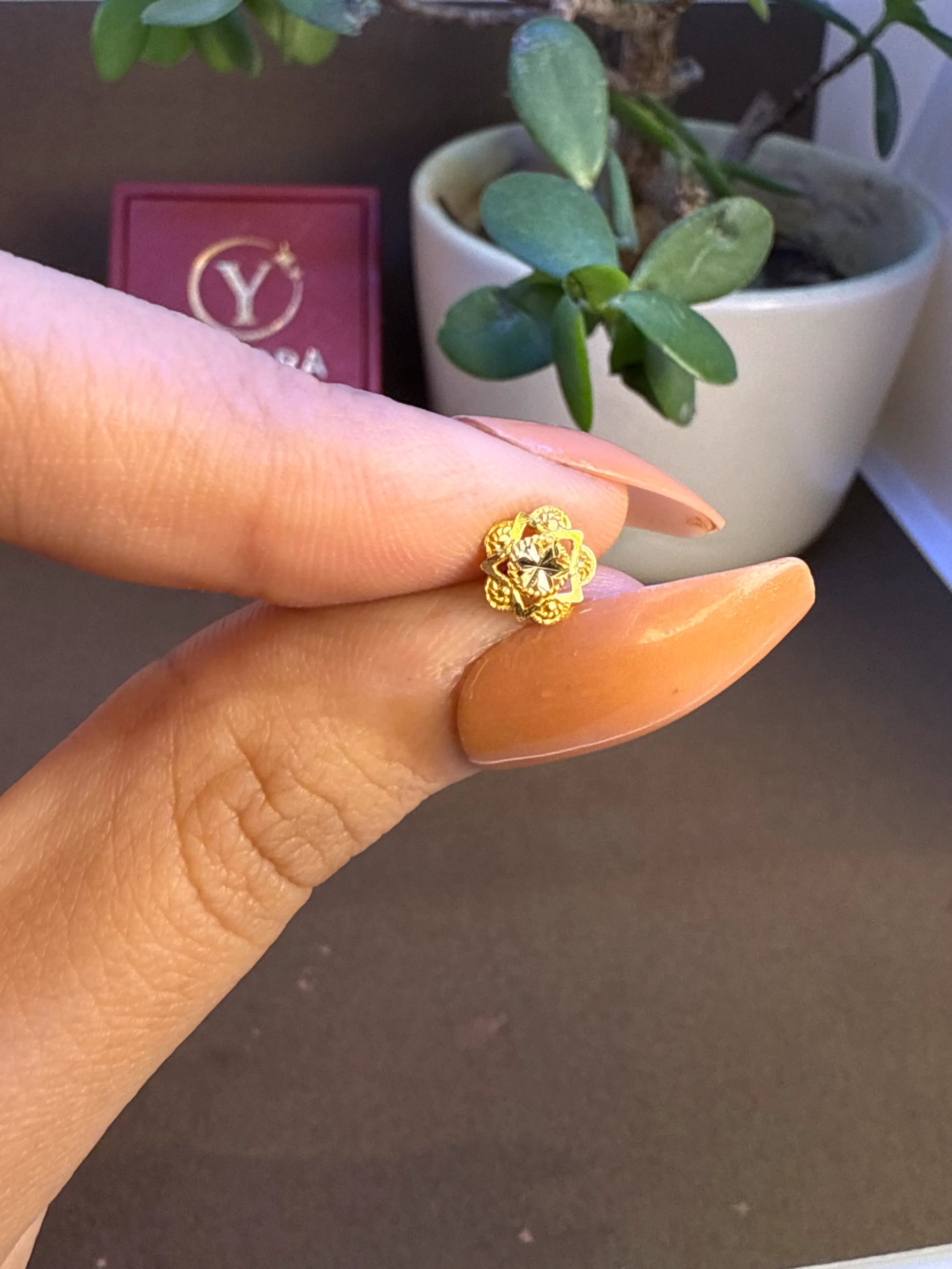 At Yuvora, we use only 14K and 18K BIS hallmarked gold. These gold alloys are carefully selected to be nickel-free, hypoallergenic, and comfortable for daily wear, even on sensitive skin. Gold has been cherished in jewellery for centuries because it’s naturally non-reactive, resistant to tarnish, and gentle on the skin. However, we intentionally avoid 22K gold for studded jewellery, as it’s too soft to securely hold diamonds or gemstones over time. Instead, 14K gold offers the ideal balance of strength, shine, and safety, making sure your nose pin remains both beautiful and durable.
