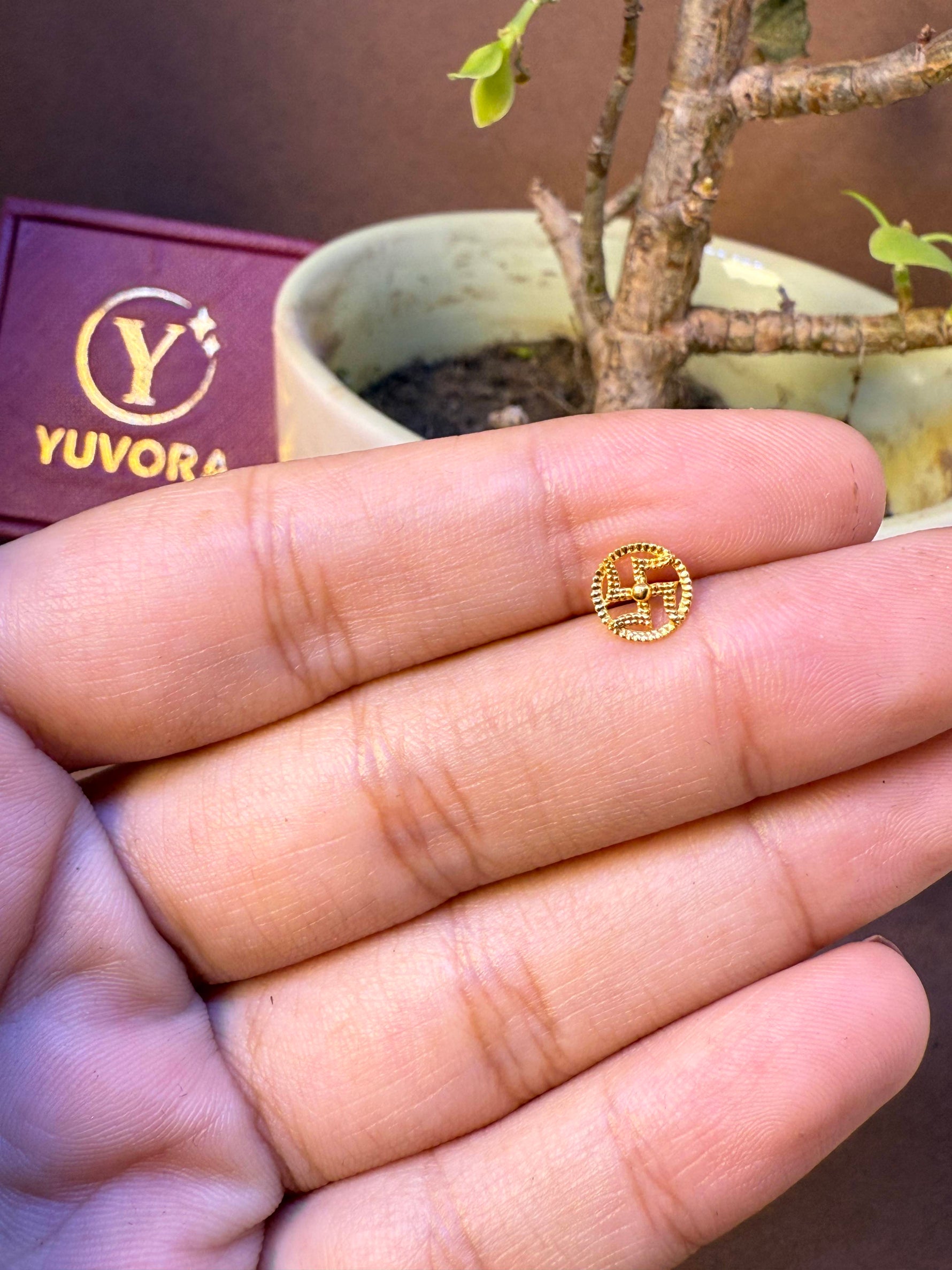 Unit price perSwastik Aura Gold Nose Pin – Simple 18K Nose Pin Gold Design for Women