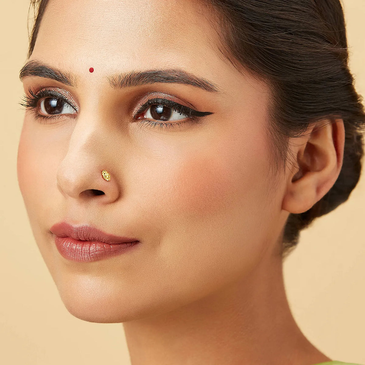 - Design Style: Round diamond-cut handcrafted nose pin gold design