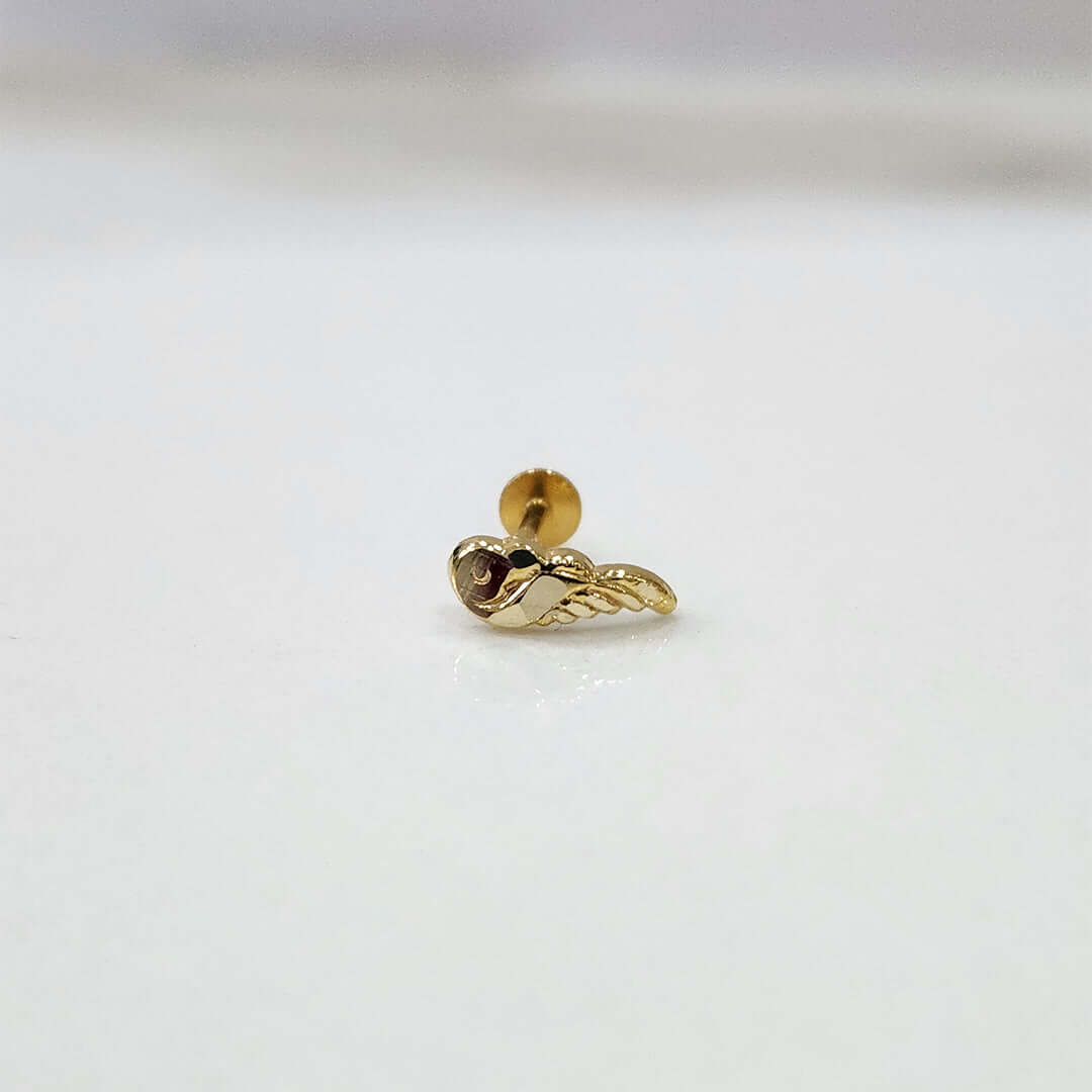 This nose pin has a finely carved wing with flowing lines and lustrous gold finish, which is both dynamic and elegant to give an ethereal yet lasting look.