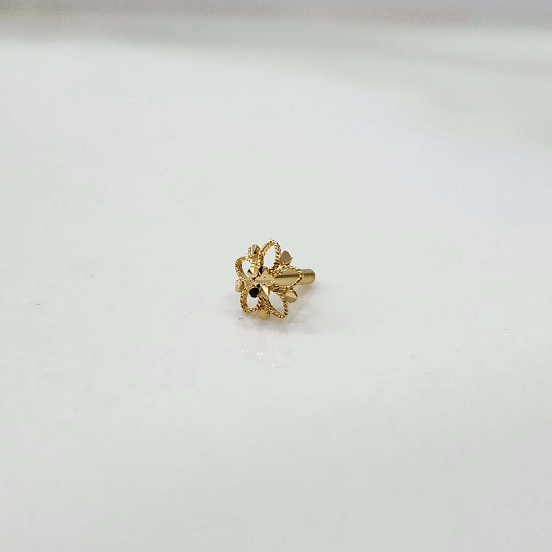 Beautifully wrought the stud boasts intricate looping petals and delicate detail for a bright three dimensional floral glitter. You can check this gold nose pin with price on Yuvora's website.