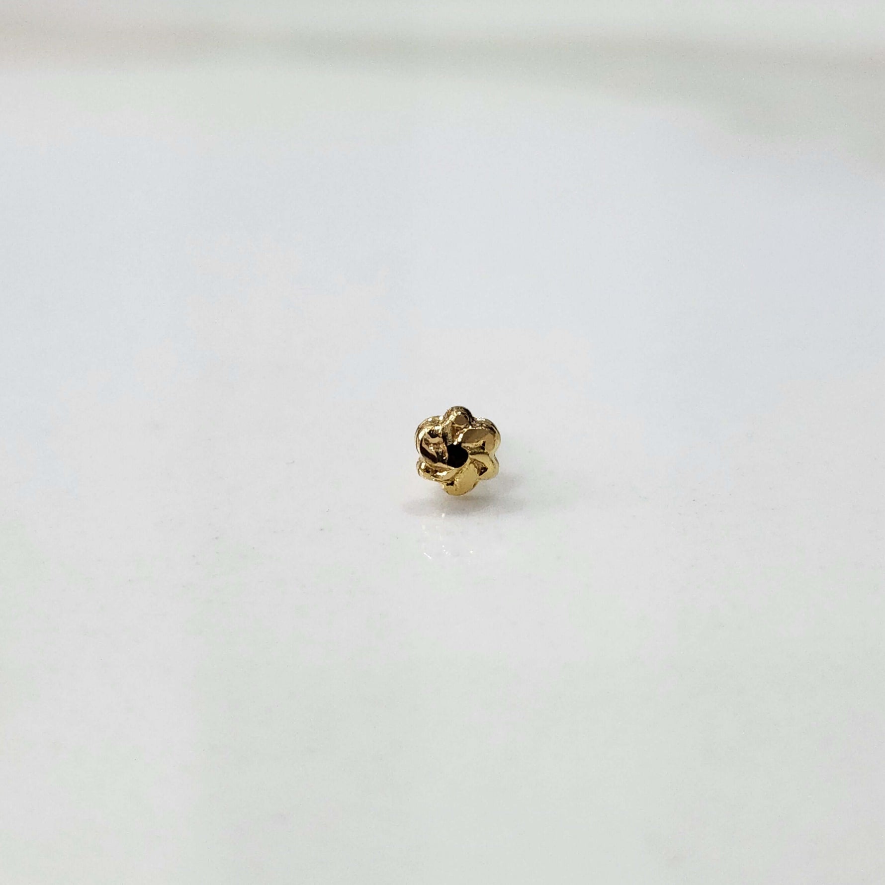 The gold nose pin has a carved group of lightly twisted petals that create a tight knot-like flower. Its smooth surface complements its curved surfaces, making it a glow whenever it moves. Its classy, natural shape renders it a flexible accessory that can be used on a daily basis and on special occasions.