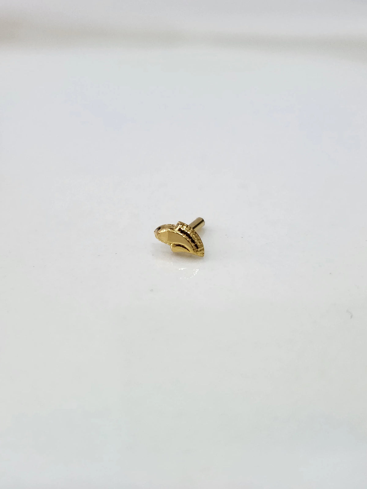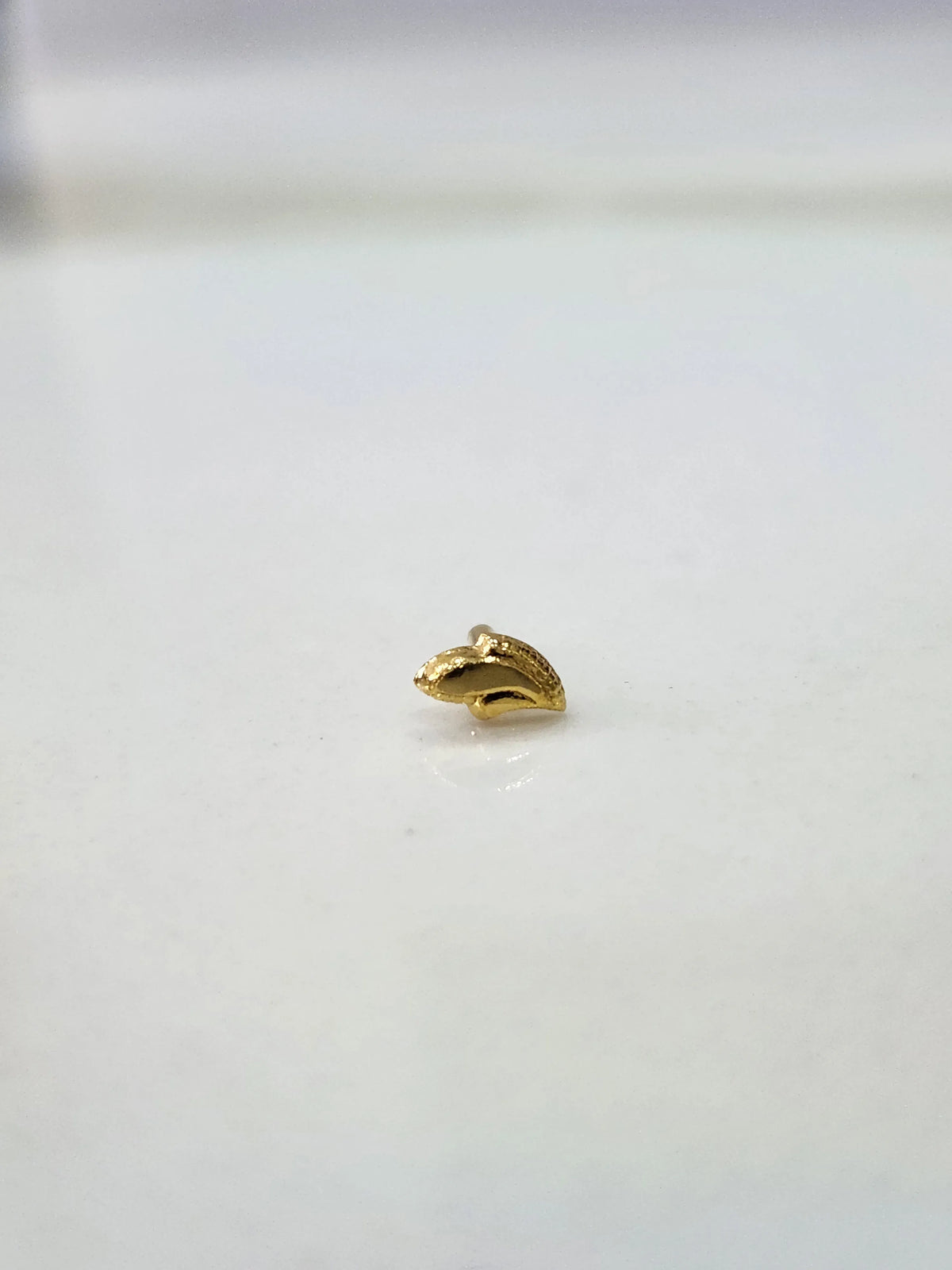 This gold nose pin is crafted in a leaf-shaped design having the soft curves and light texturing. It has a natural shine because of its polished surface, and it is a beautiful option to wear every day.