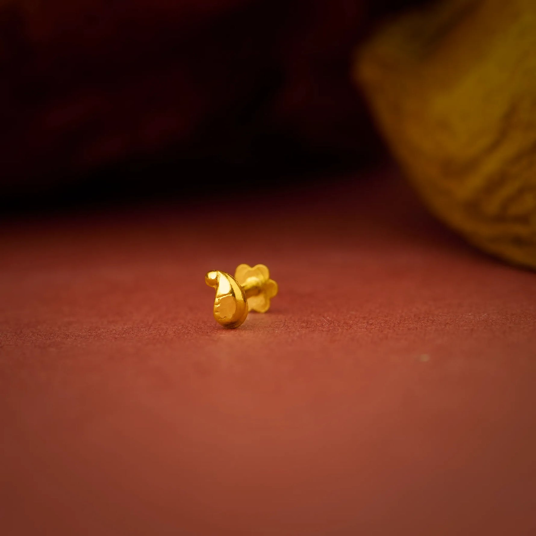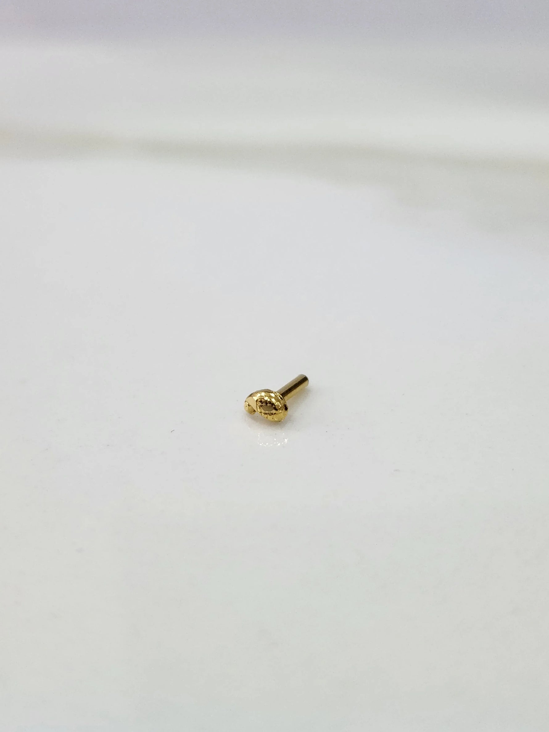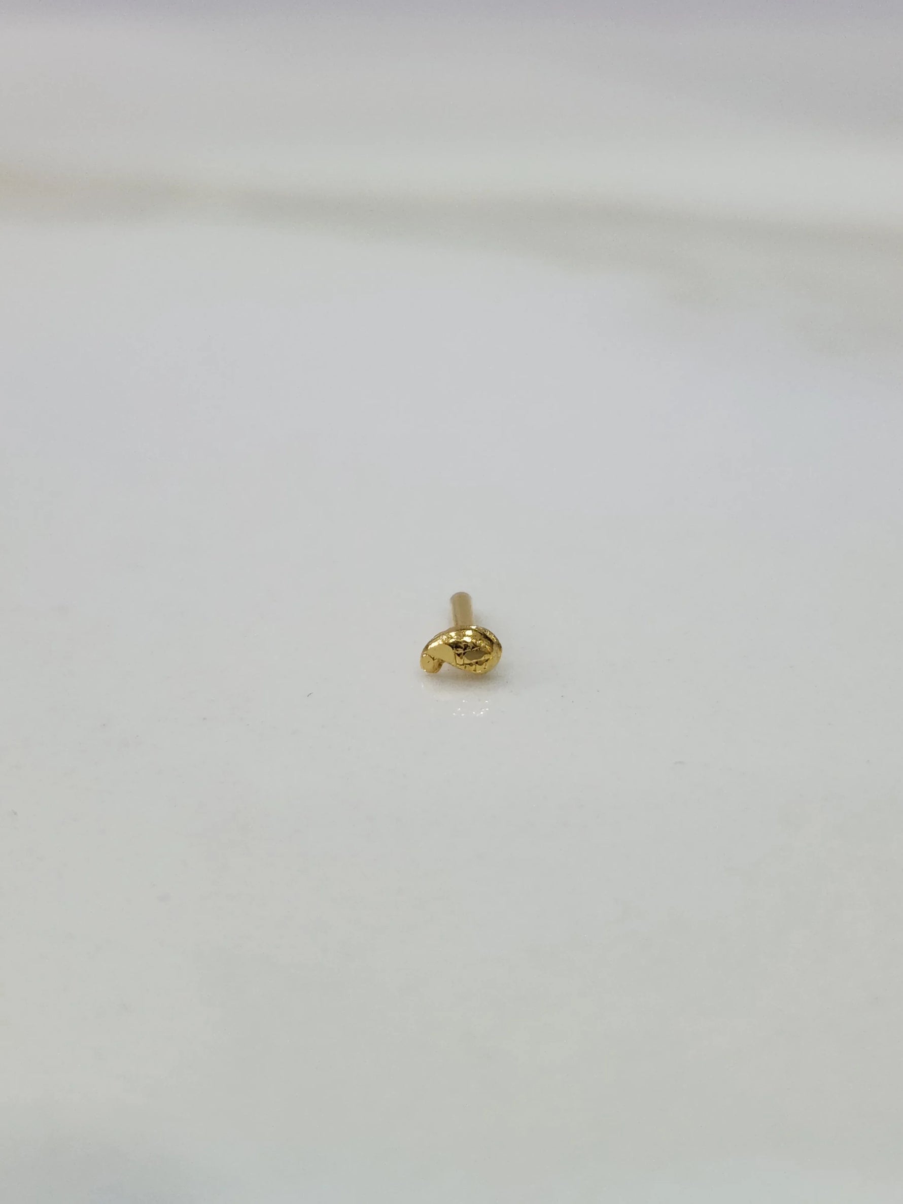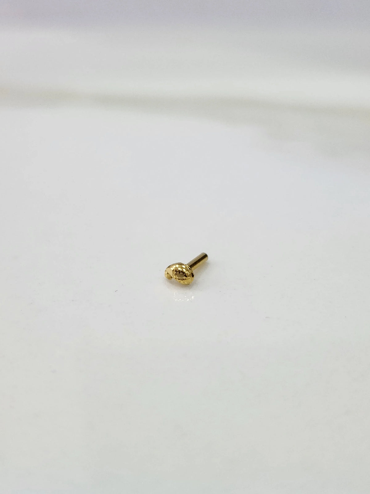 The gold nose pin has a small paisley outline with a slight textured finish giving it a bit of depth and personality to its shiny surface. The curvy, smooth shape is comfortable and secure, which makes it a universal accessory to any event.
