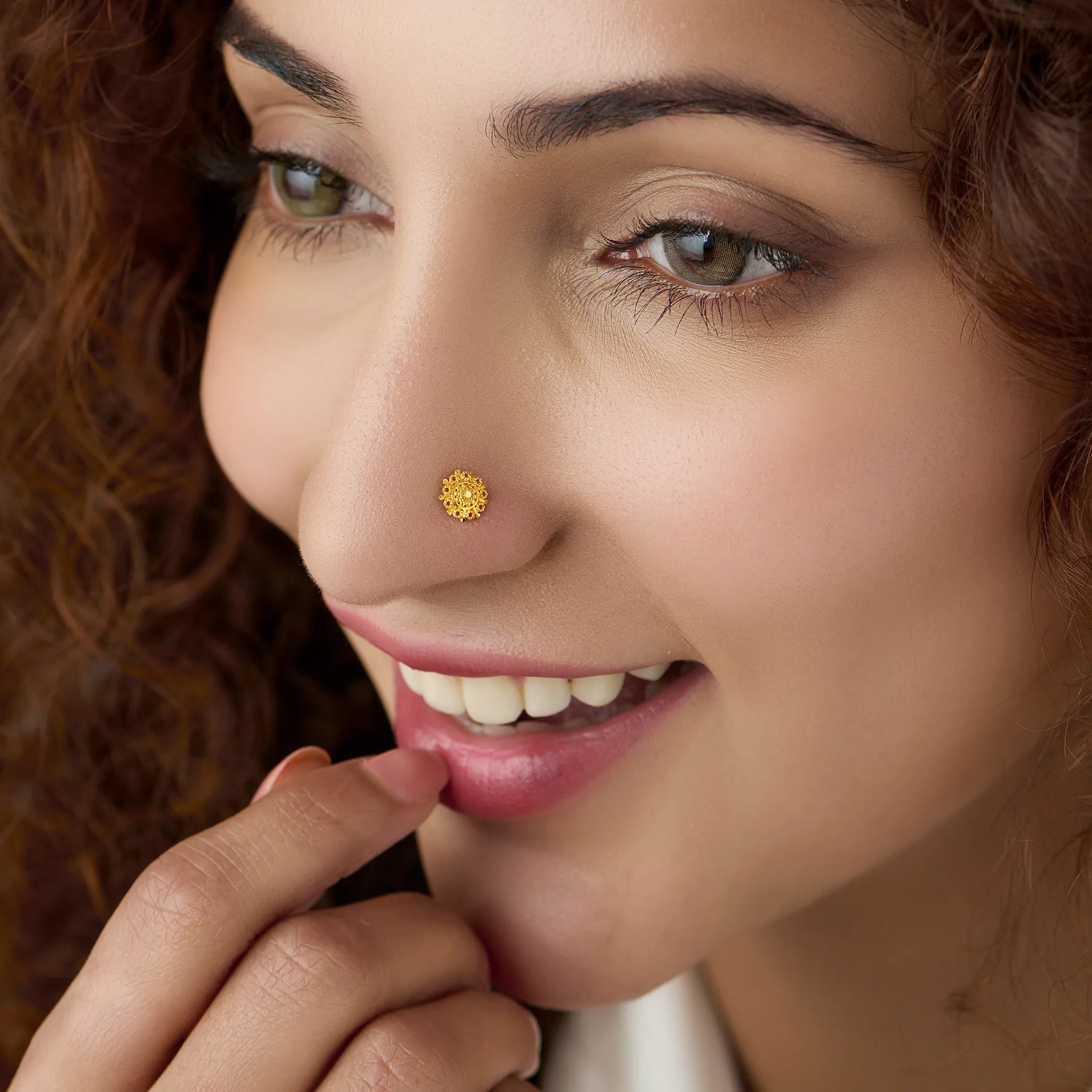 At Yuvora, we use only 14K and 18K BIS hallmarked gold. These gold alloys are carefully selected to be nickel-free, hypoallergenic, and comfortable for daily wear, even on sensitive skin. Gold has been cherished in jewellery for centuries because it’s naturally non-reactive, resistant to tarnish, and gentle on the skin. However, we intentionally avoid 22K gold for studded jewellery, as it’s too soft to securely hold diamonds or gemstones over time. Instead, 14K gold offers the ideal balance of strength, shine, and safety, making sure your nose pin remains both beautiful and durable.