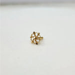 A gold nose pin in the form of a round nose pin with a twisted openwork spiral and shining facets, which provides a bright, eternal accent.