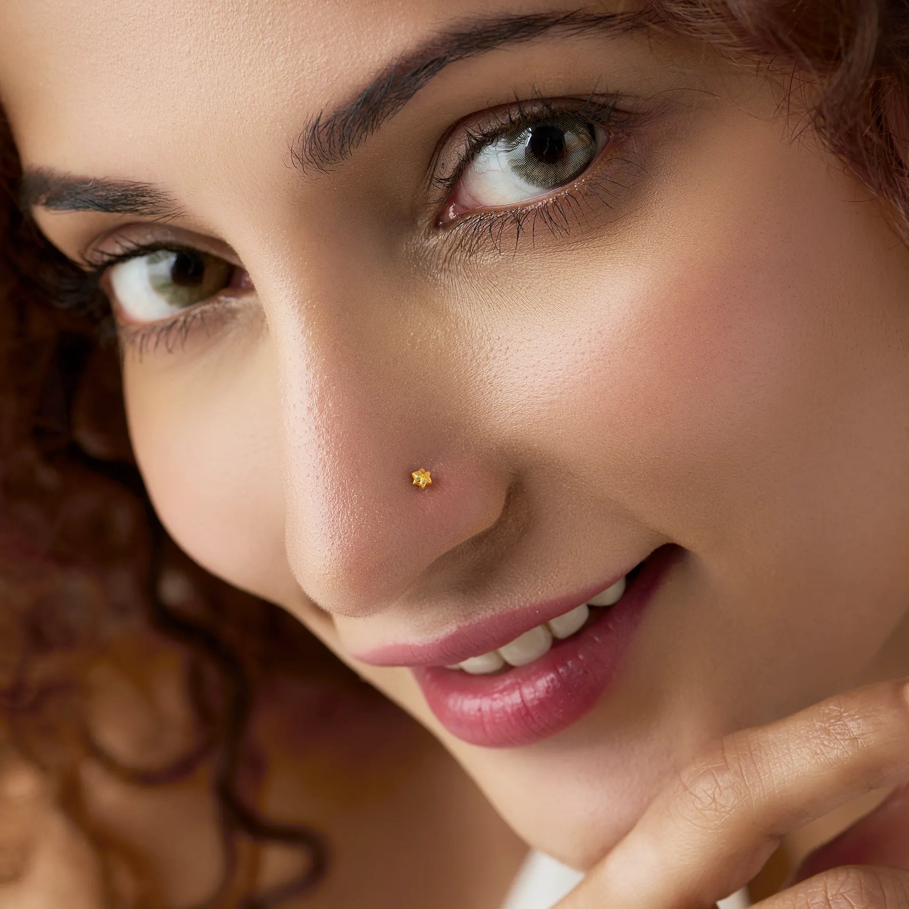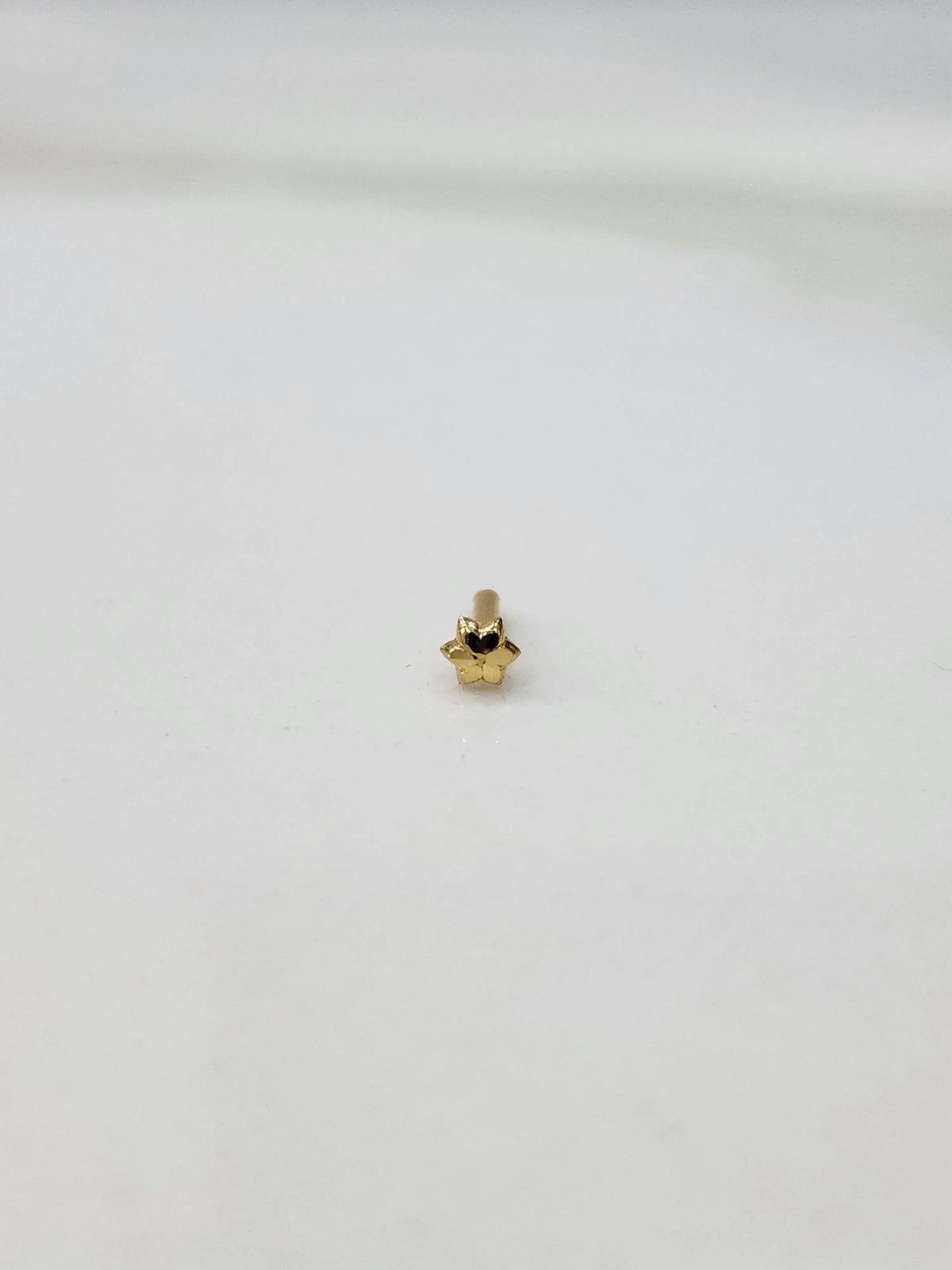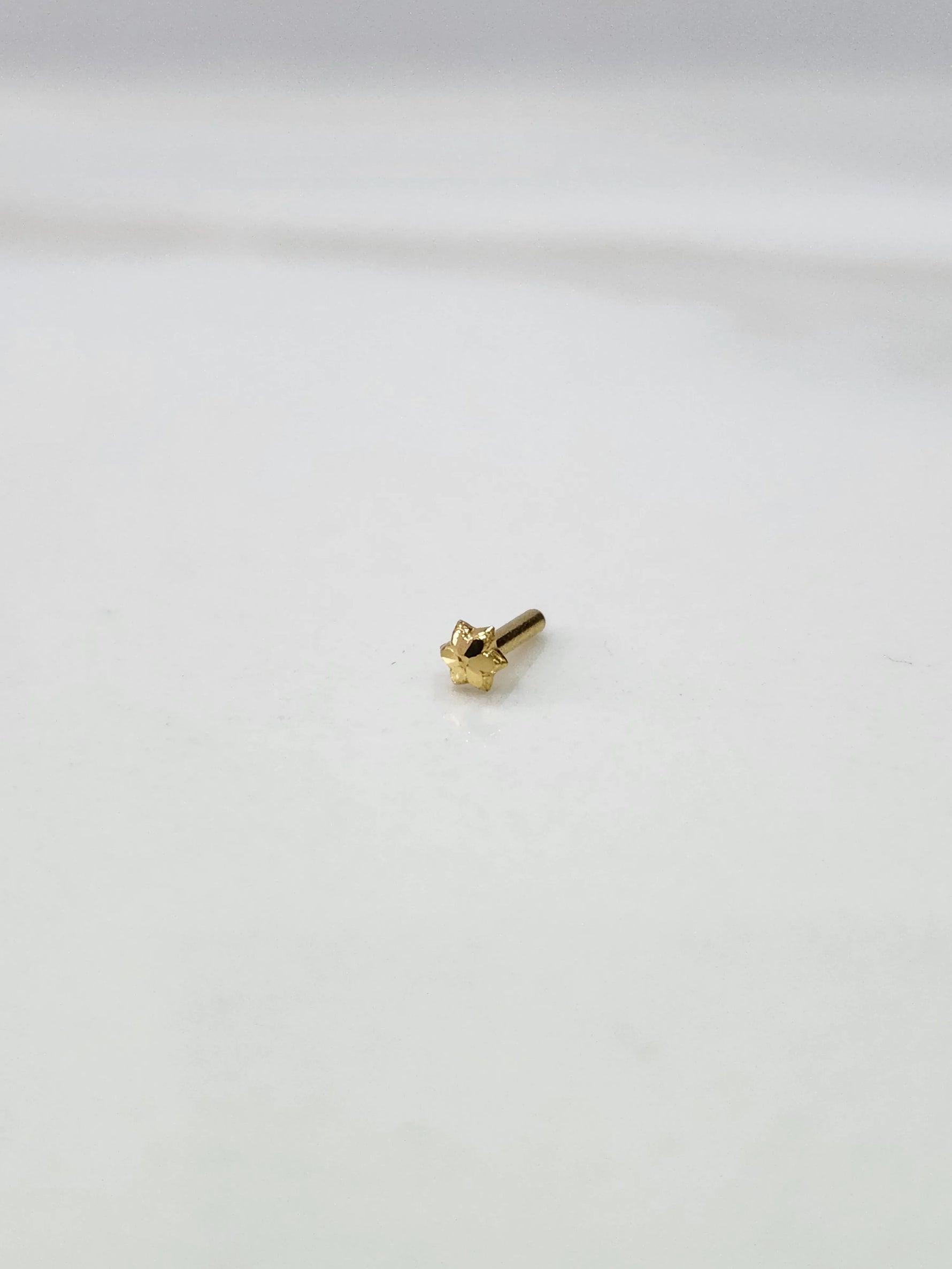 The nose pin is made of gold, with a sharp five-petal star-like flower, with soft lines and a smooth surface that reflects the light beautifully. Its pure and bold design makes it an attractive option to those who prefer discreet but eye-catching items.