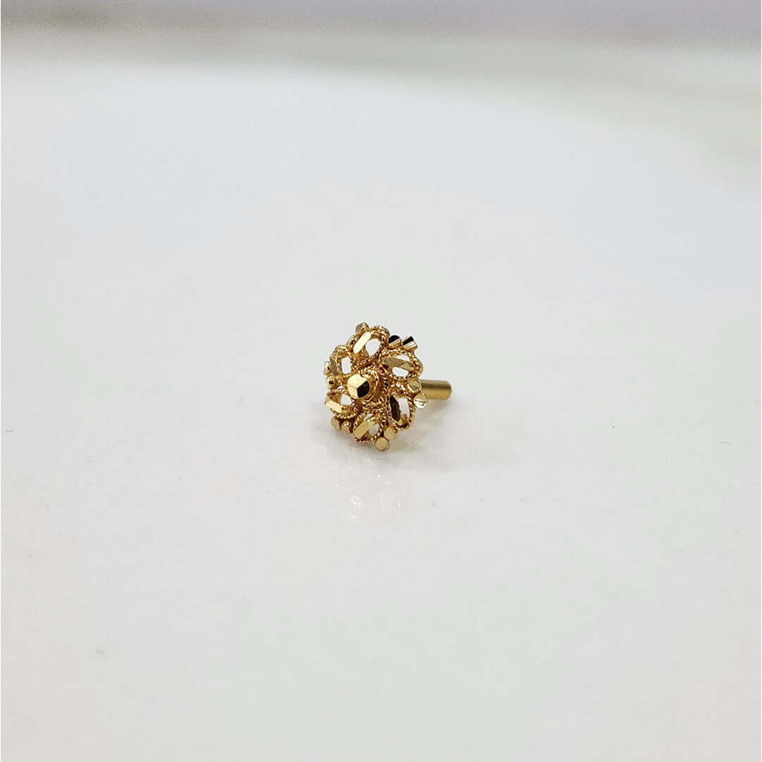 A beautiful gold nose pin with a complex filigree design, made to shine with every little movement.