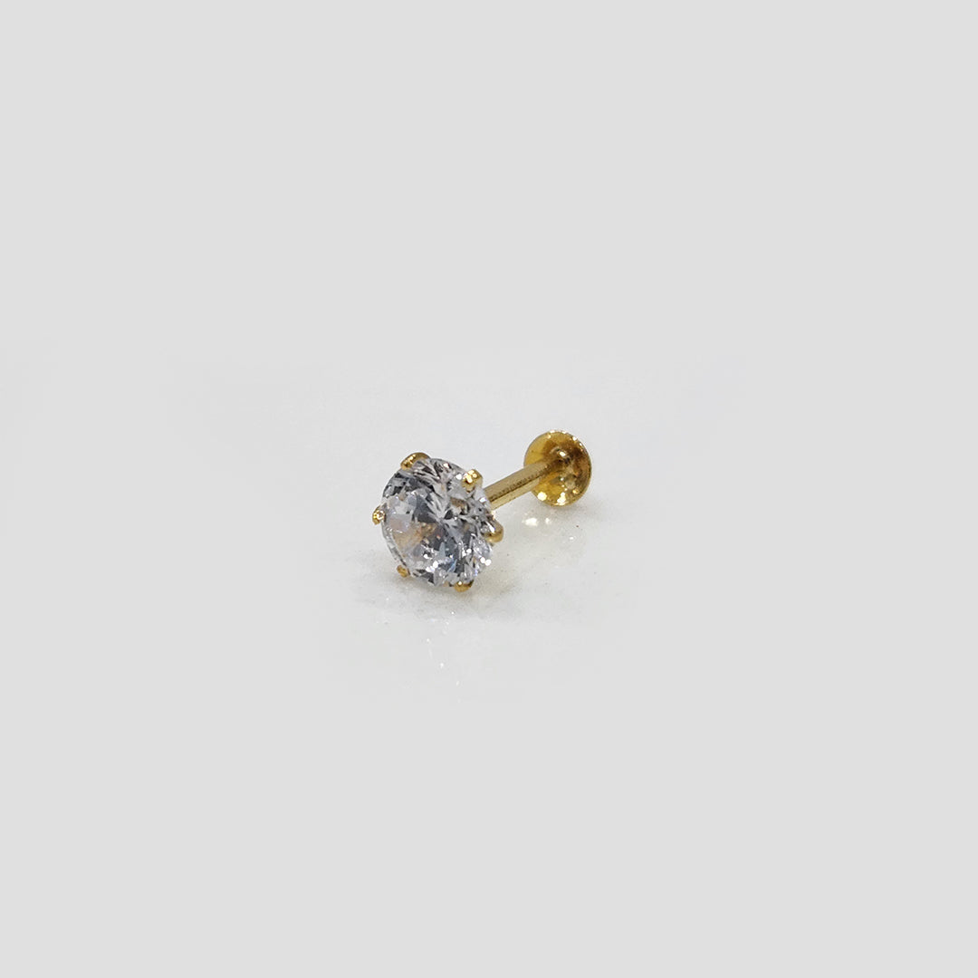 The nose pin features a brilliant clear gemstone, perfectly mounted in gold prongs, that exudes crystalline clarity and subtle elegance to create a timelessly sophisticated and radiant everyday adornment.