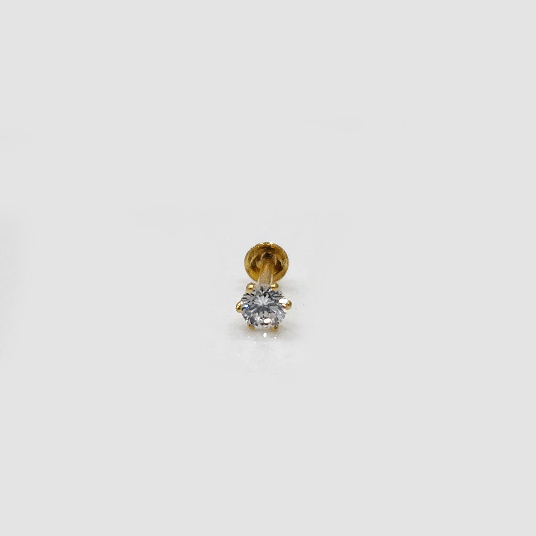 This nose pin is a round diamond with six-prong gold setting, which embodies the epitome of elegance and classic sophistication in a small, glowing accessory to enhance everyday sophistication. You can check out this small nose pin in gold's price at Yuvora.