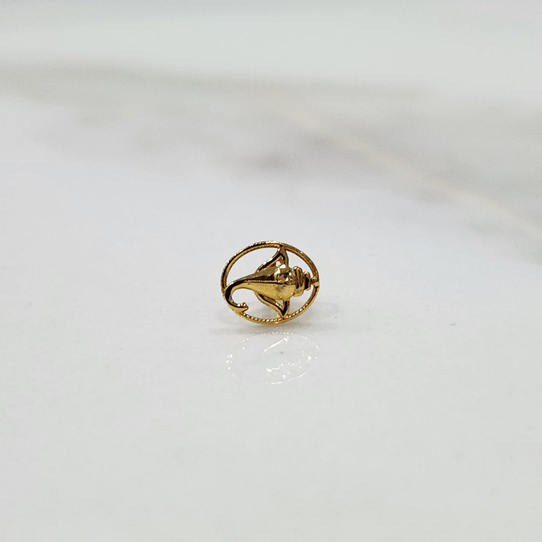This small nose pin gold has a well carved Ganeshji design, the soft lines of the elephant face and trunk are beautifully enclosed in a round frame. The central figure is very bright and detailed, which emphasizes the iconic attributes of the deity, including the curved trunk and the rich crown.