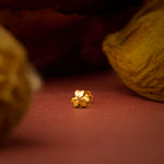A very well-polished gold stud in the form of a three-petal flower, each petal rounded, bold and softly domed to give a smooth minimalistic appearance. The center is slightly recessed, and it flows smoothly into the petals and produces a fine, harmonious floral touch. You can check out this small gold nose pin price at Yuvora's website.